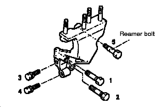 NOTE: Slowly remove the reamer bolt. Keep in mind that the reamer bolt is sometimes heat seized on the engine support bracket. To make the installation easier, raise the engine as necessary.