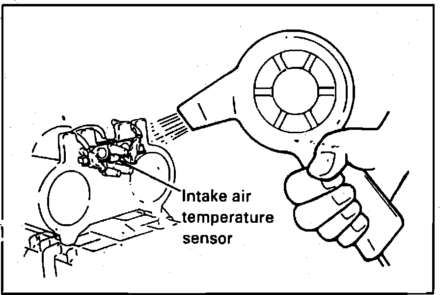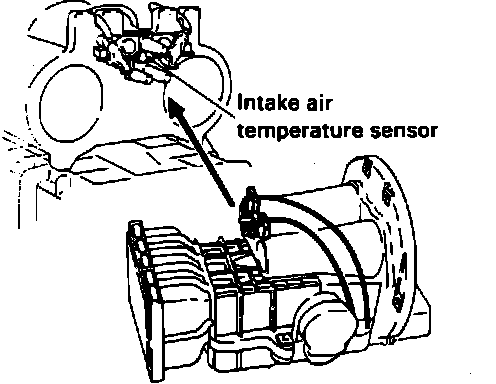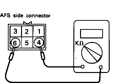 To test the Air Temperature Sensor (Intake), located on the air flow sensor, in the air cleaner housing. Remove the air flow sensor (AFS) connector and proceed as follows.