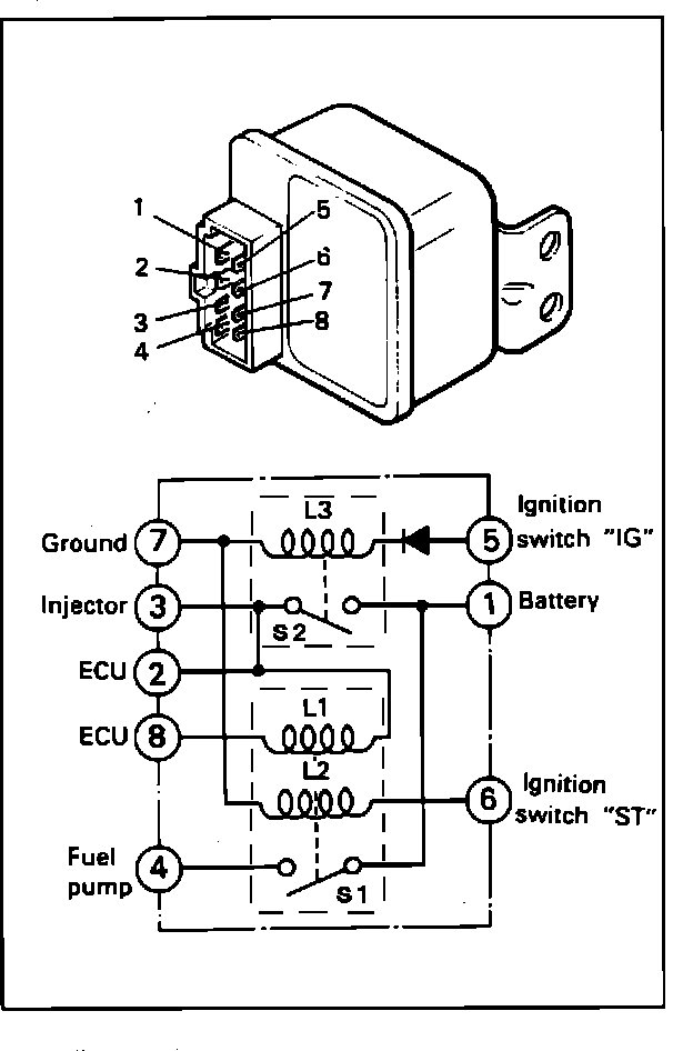 NOTE: Failure of the control relay could interrupt power supply to the fuel pump, injectors and ECU, resulting in start failure.