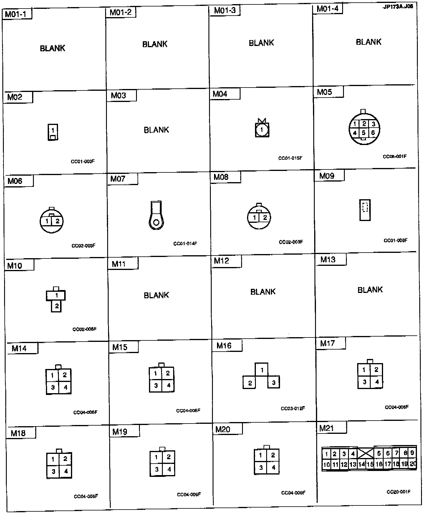 Connector Identification: M01-1 Thru M21: