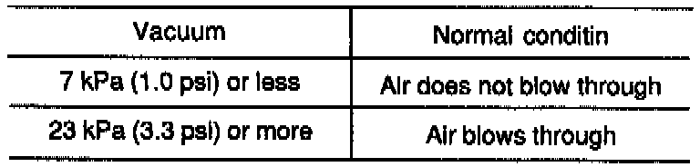 4. Blow in air from one passage of the exhaust gas recirculation valve to check condition as shown.