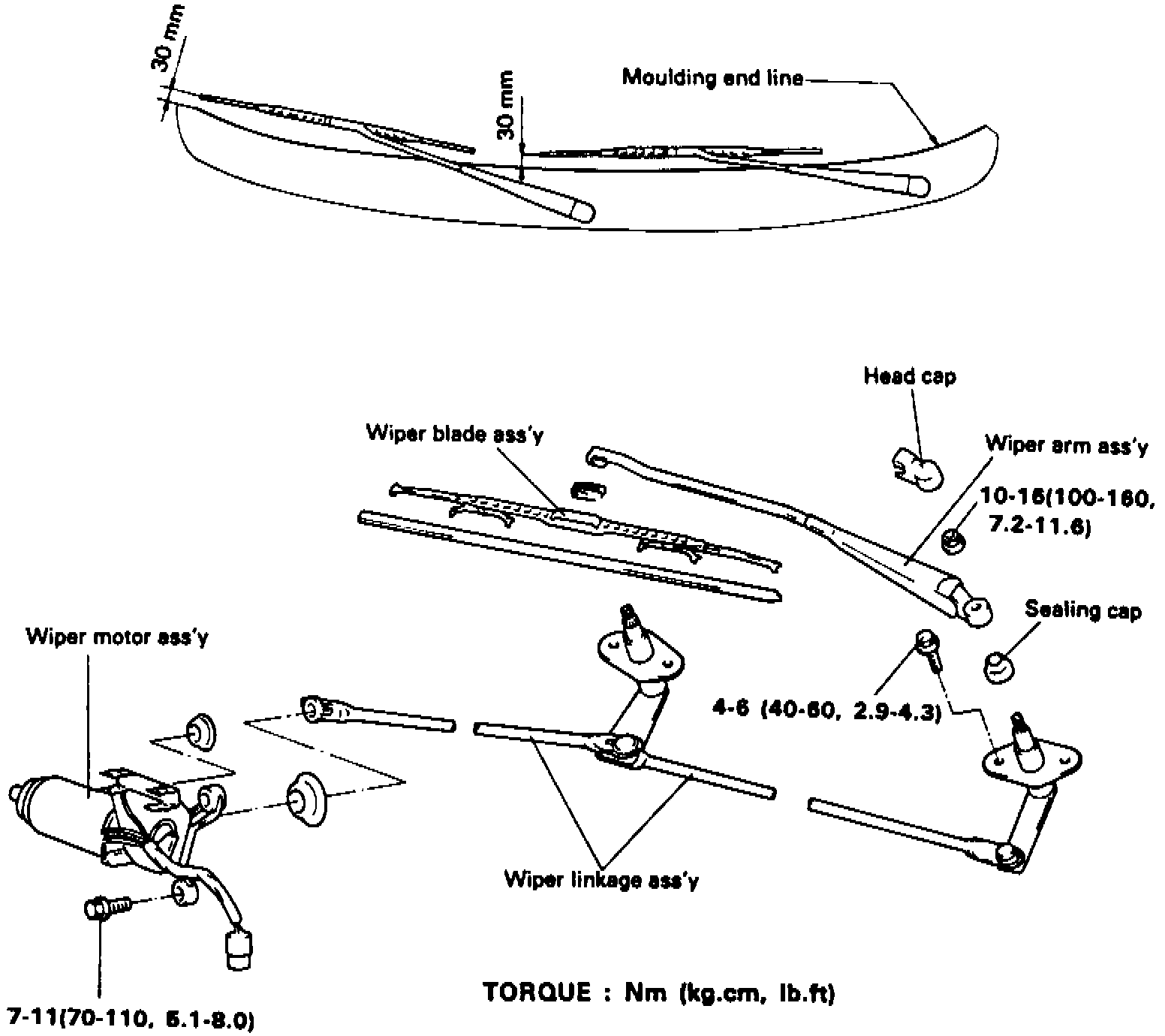 4. Disconnect wiper motor linkage, then remove wiper motor.