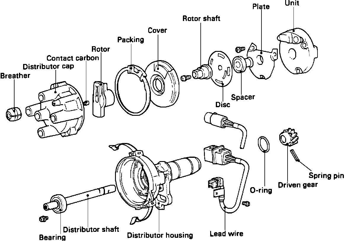 7. Inspect the distributor cap for continuity between the input and output sides of each terminal.