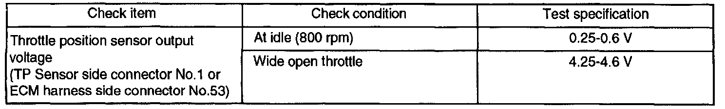 4. Operate the throttle valve slowly from the idle position to the full open position and check that the resistance changes smoothly in propotion with the throttle valve opening angle.