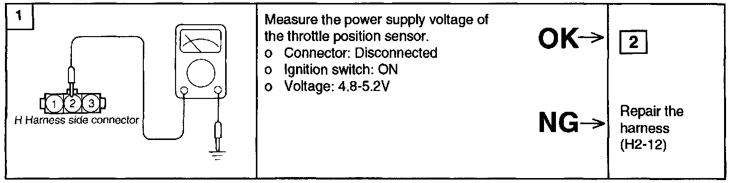 5. If the resistance is out of specification, or fails to change smoothly, replace the throttle position sensor.