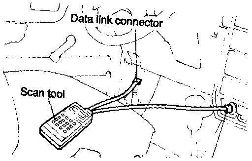 2. Install the tachometer (Disconnect the noise filter connectors and connect the Special Service Tool [09273-24000] between them. Then, connect the tachometer to the Special Service Tool) and the timing light, or connect the scan tool to the Data Link Connector in the fuse box.