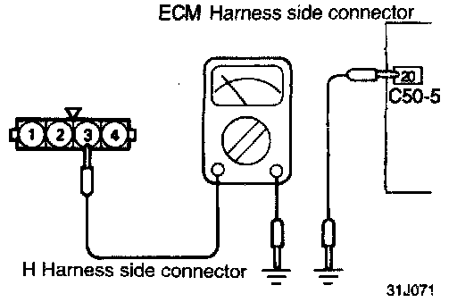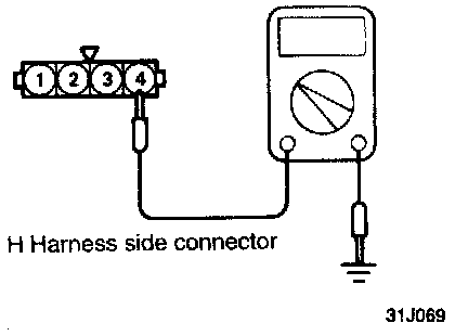 3. Connect a pointer type ohmmeter between terminal 1 (sensor ground) and terminal 3 (sensor output).
