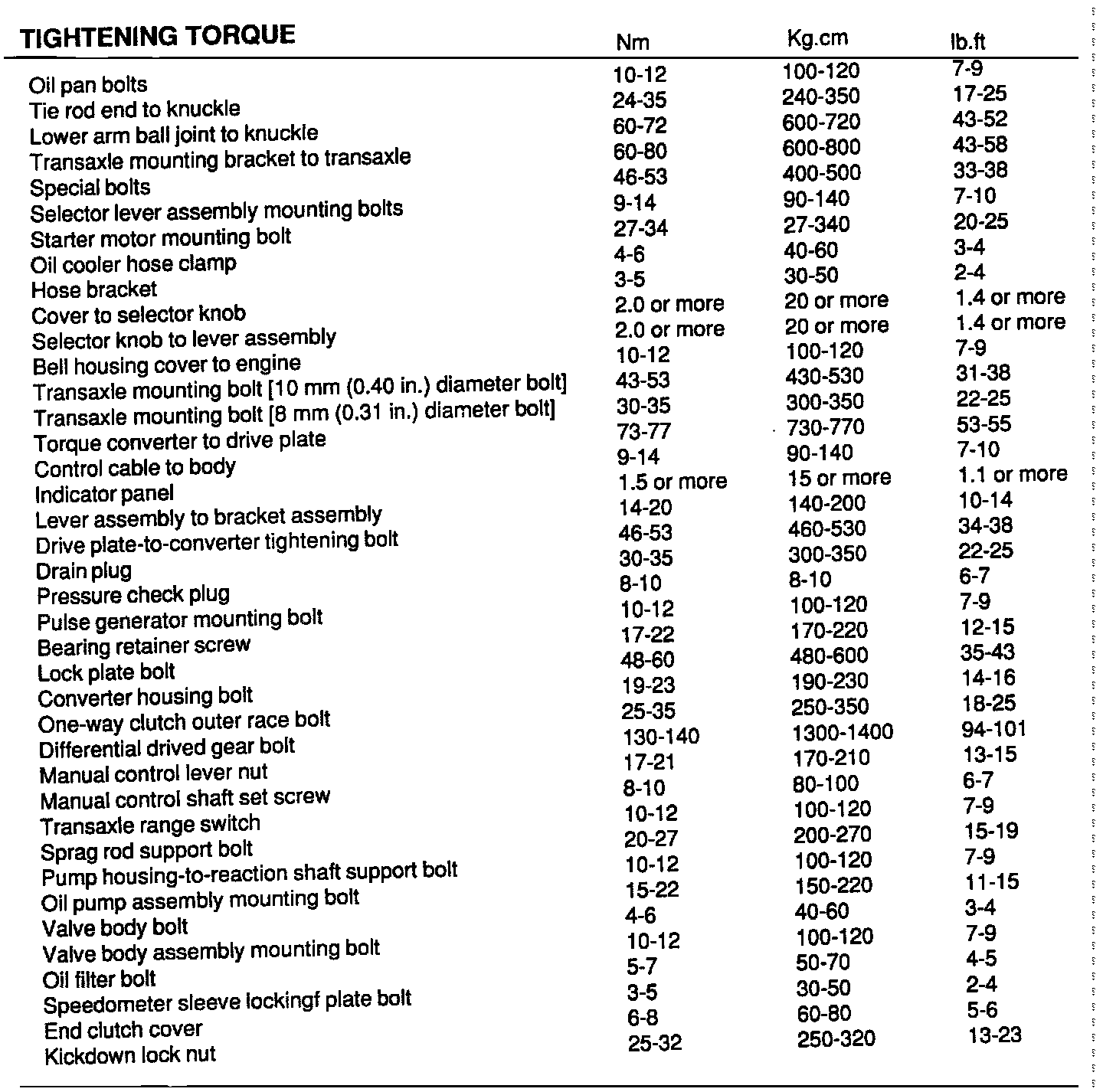 A/T Torque Data