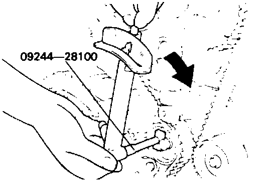 (1) Screw in the special tool until its end makes contact with the tensioner arm.