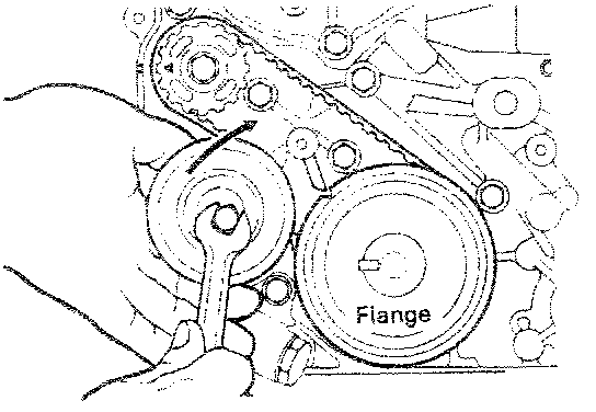 NOTE: If the timing belt is reused, make an arrow mark indicating the turning direction (or the front of the engine) to make sure that the belt is reinstalled in the same direction as before.