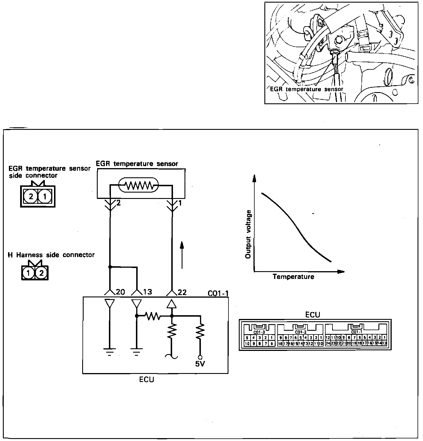 1. Disconnect the EGR temperature sensor connector and turn the key to the ON position.