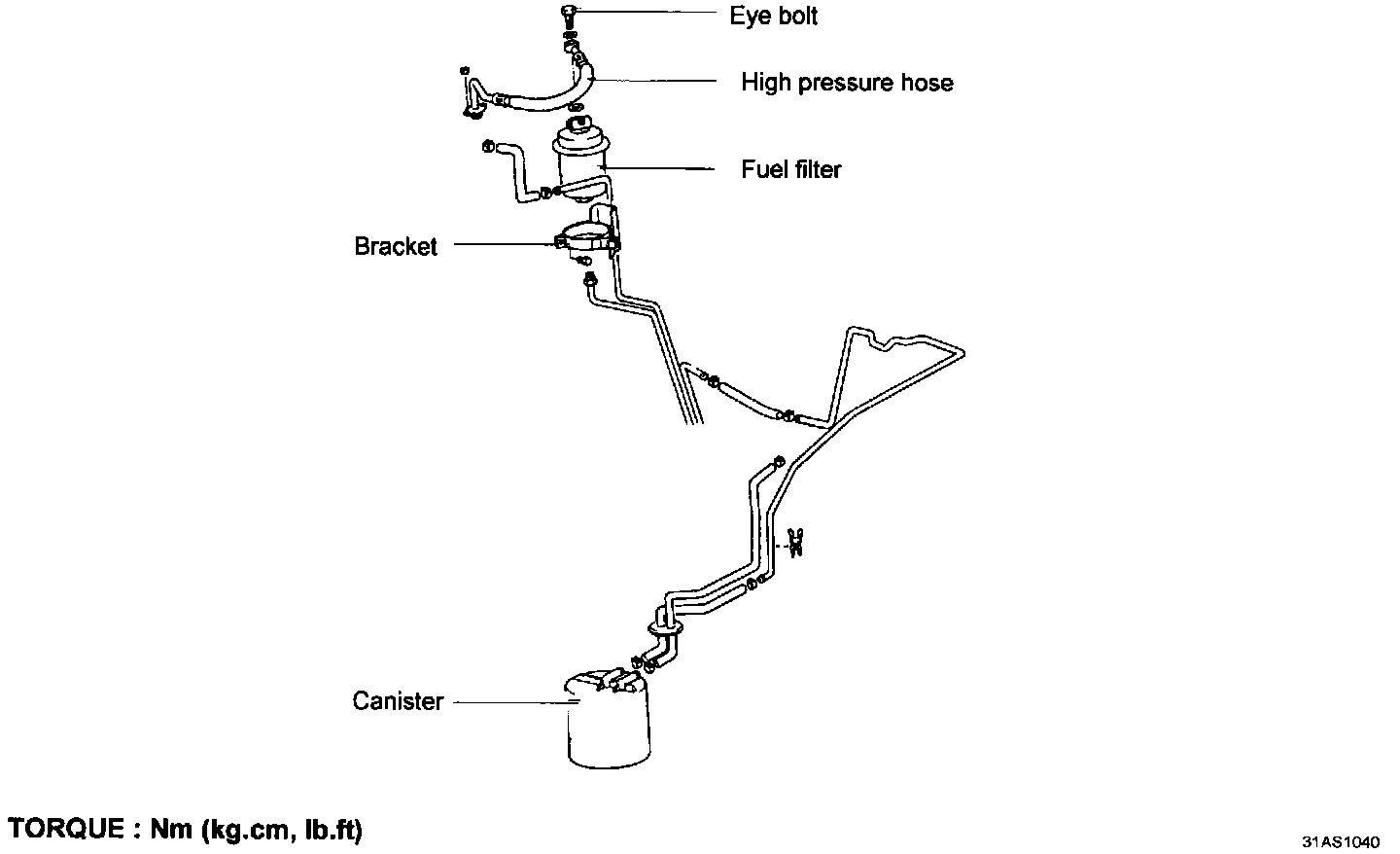 1. Remove the upper eye bolt while holding the fuel filter nut securely and remove the high pressure fuel hose.