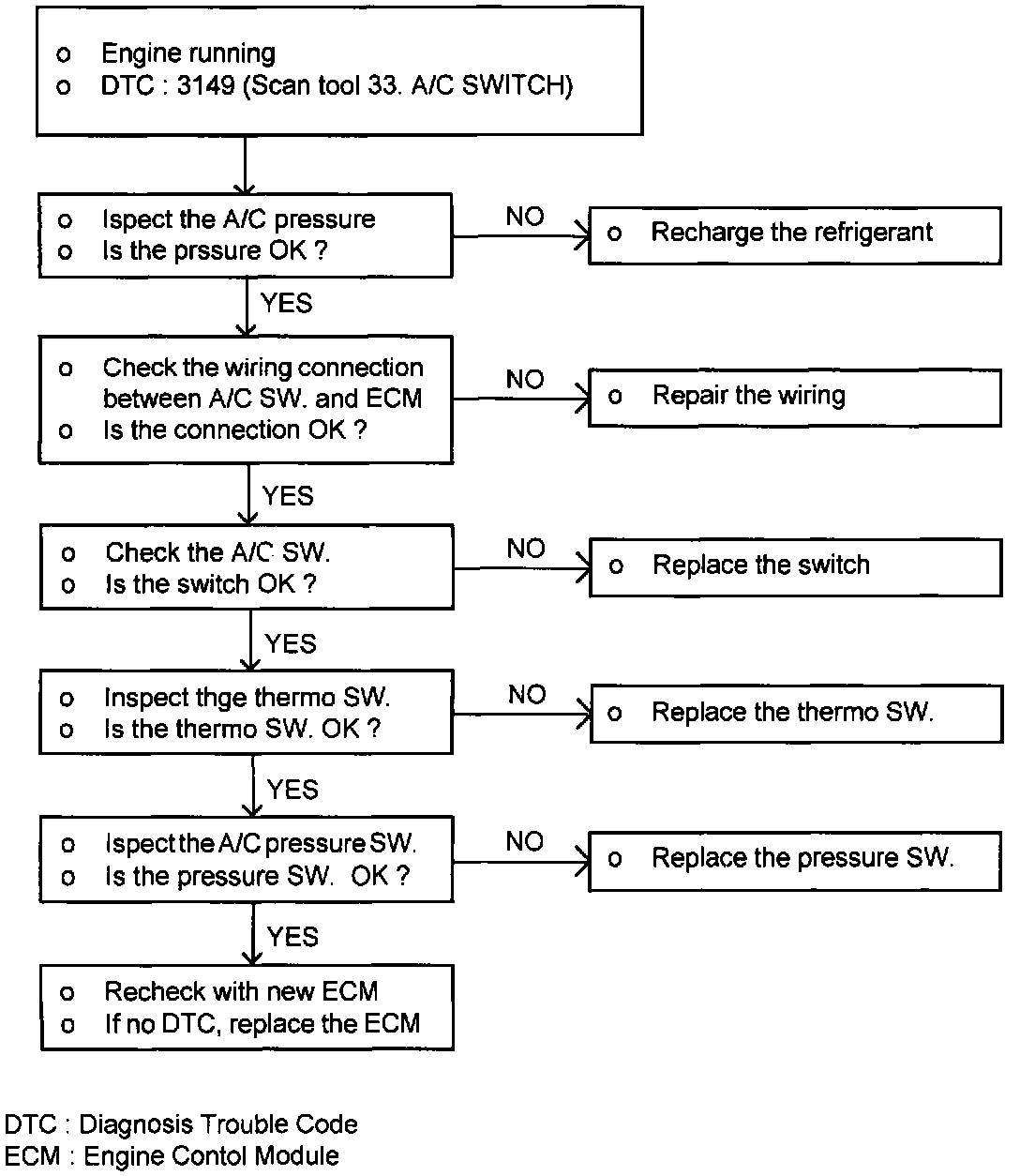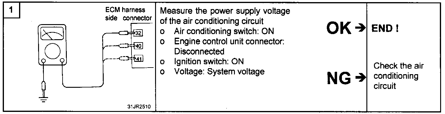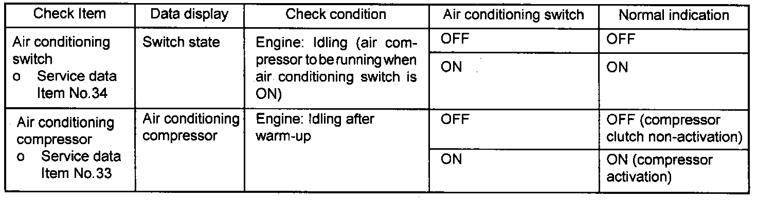 If the air compressor magnet clutch is not activated when the air conditioning switch is turned on during idling, faulty air conditioning control system is suspected.