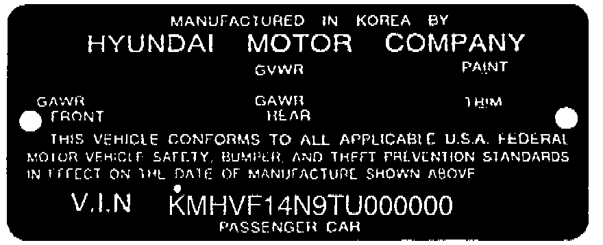 13. Open the left door and place a punch mark over the 1 character of the VIN on the B-Pillar identification plate. This will indicate that the procedure has been completed.