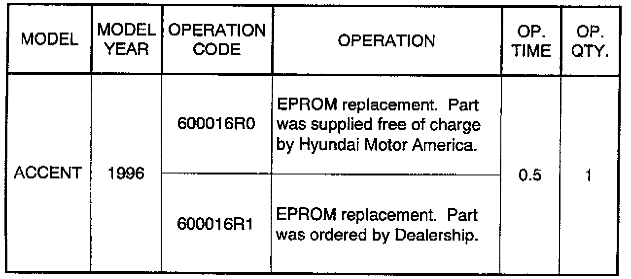 The new EPROM chip does not apply to the 1996 Accent GT.