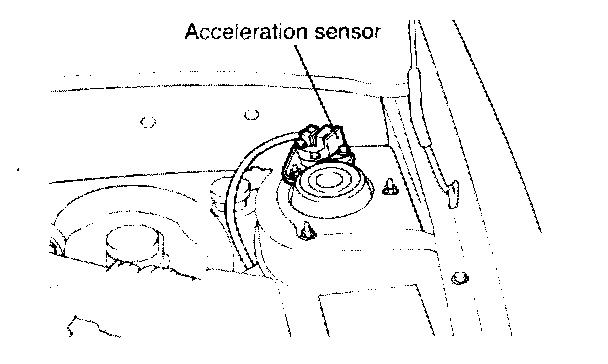 ACCELERATION SENSORThe acceleration sensor is attached to the engine room of driver's side. While driving, the rough road condition is sensed by the acceleration sensor and the ECM uses this input signal to avoid the wrong misfire detection.