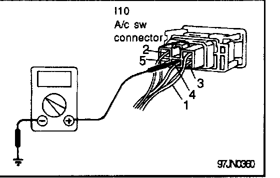 4. Check continuity between terminal 4 and 5 of air conditioning switch. If not ok, replace the air conditioning switch.