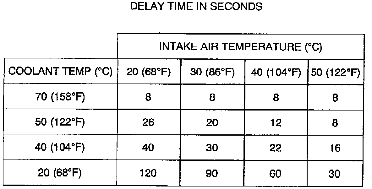 The table is the "map" for A/C compressor operation delay: