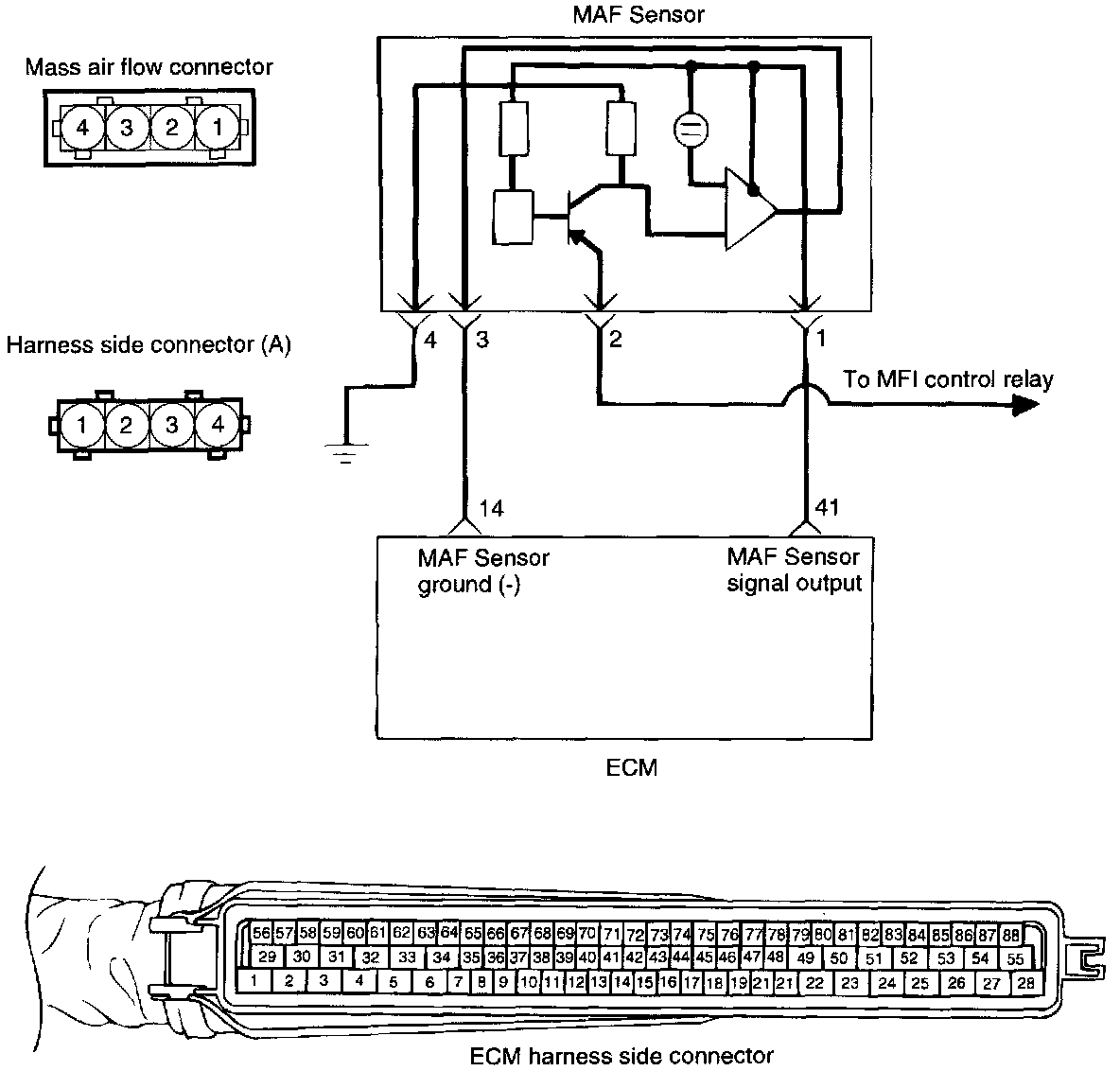 1. If the engine stalls occasionally, start the engine and shake the MAF sensor harness. If the engine stalls, check for poor contact at the MAF sensor connector.