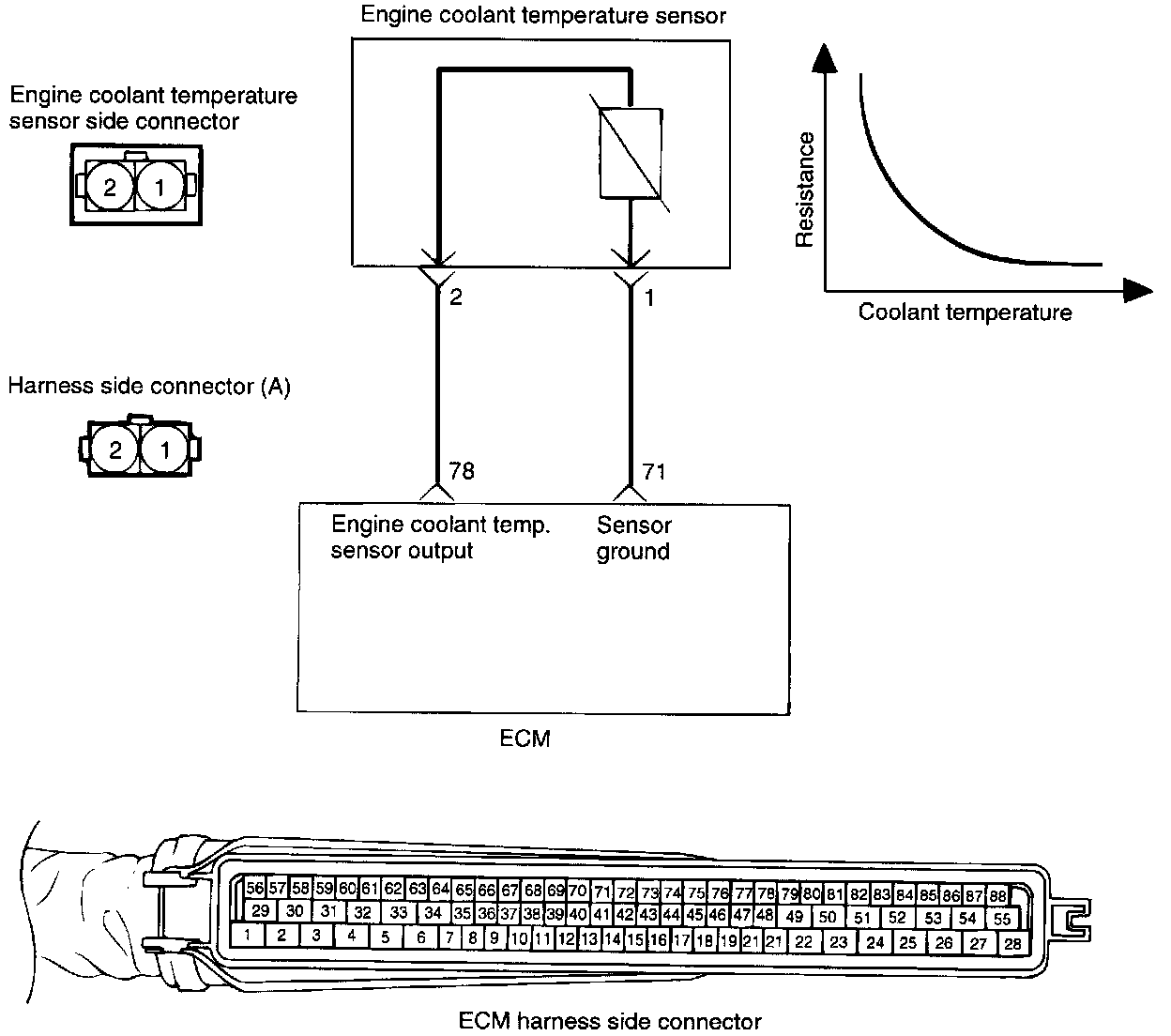 It the fast idle speed is not high enough or the engine gives off dark smoke during the engine warm-up operation, it might be caused by the engine coolant temperature sensor.