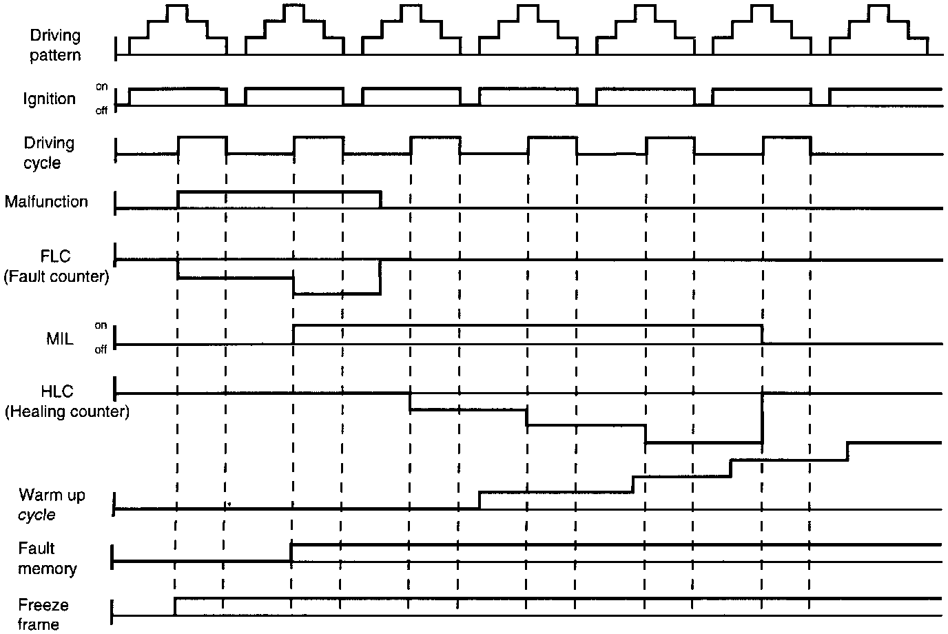 - When the same malfunction is detected and maintained during two sequential driving cycles, malfunction indicator lamp (MIL) will automatically light.
