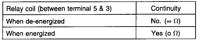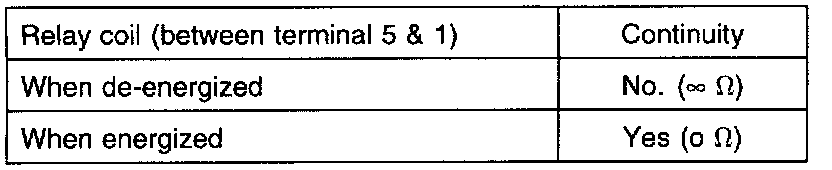 2. Check continuity of relay contacts between terminals 5 and 1.