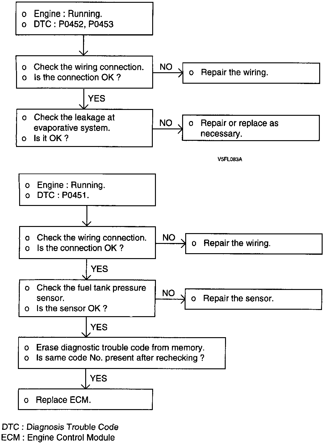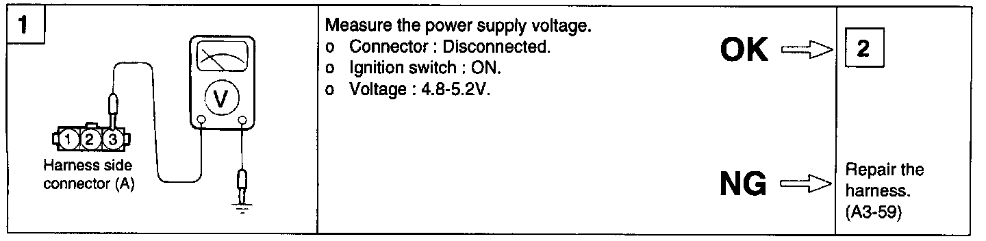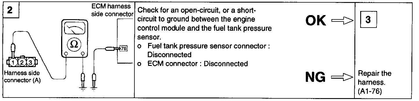 NOTE: If voltage is not as outlined in the procedure, there may be leakage in the EVAP system. Inspect the fuel tank and hoses toward canister and fuel neck. Then repair or replace relevant parts.