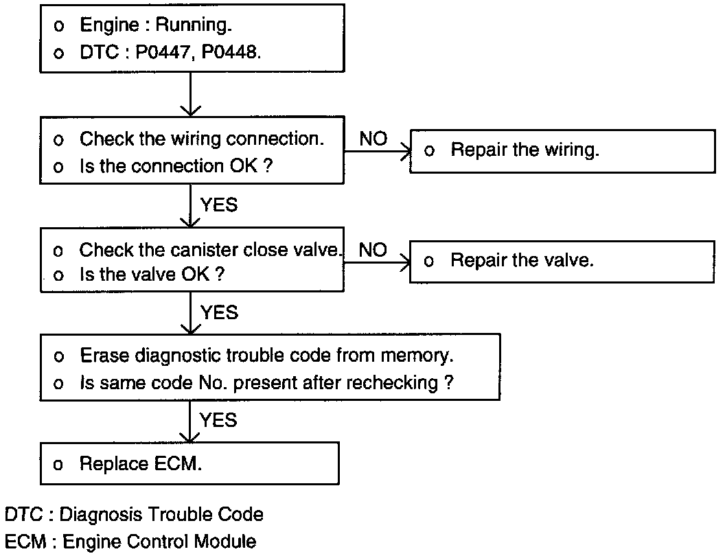4. Inspect that CCV is open when detaching the wire from (-) of battery.
