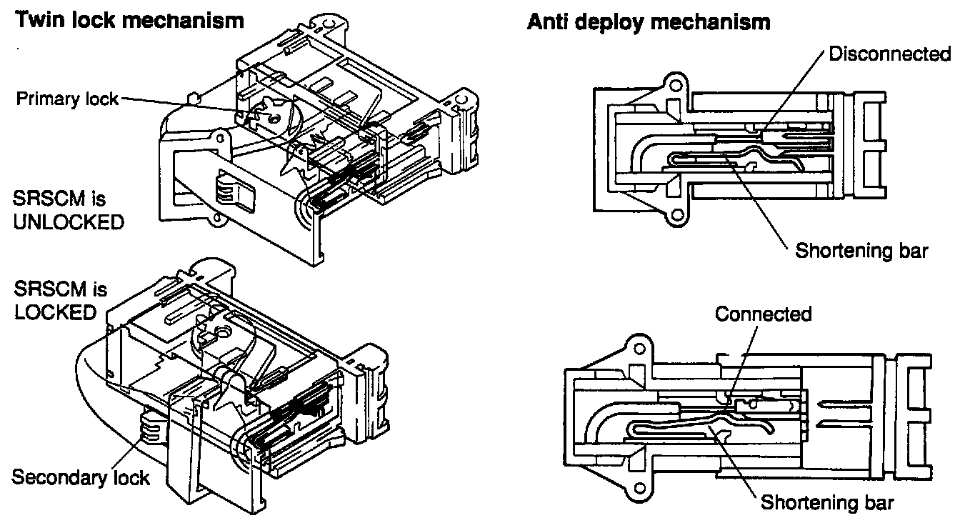 2. Anti-deploy mechanism prevents unexpected deployment by shortening of the two squib terminals.