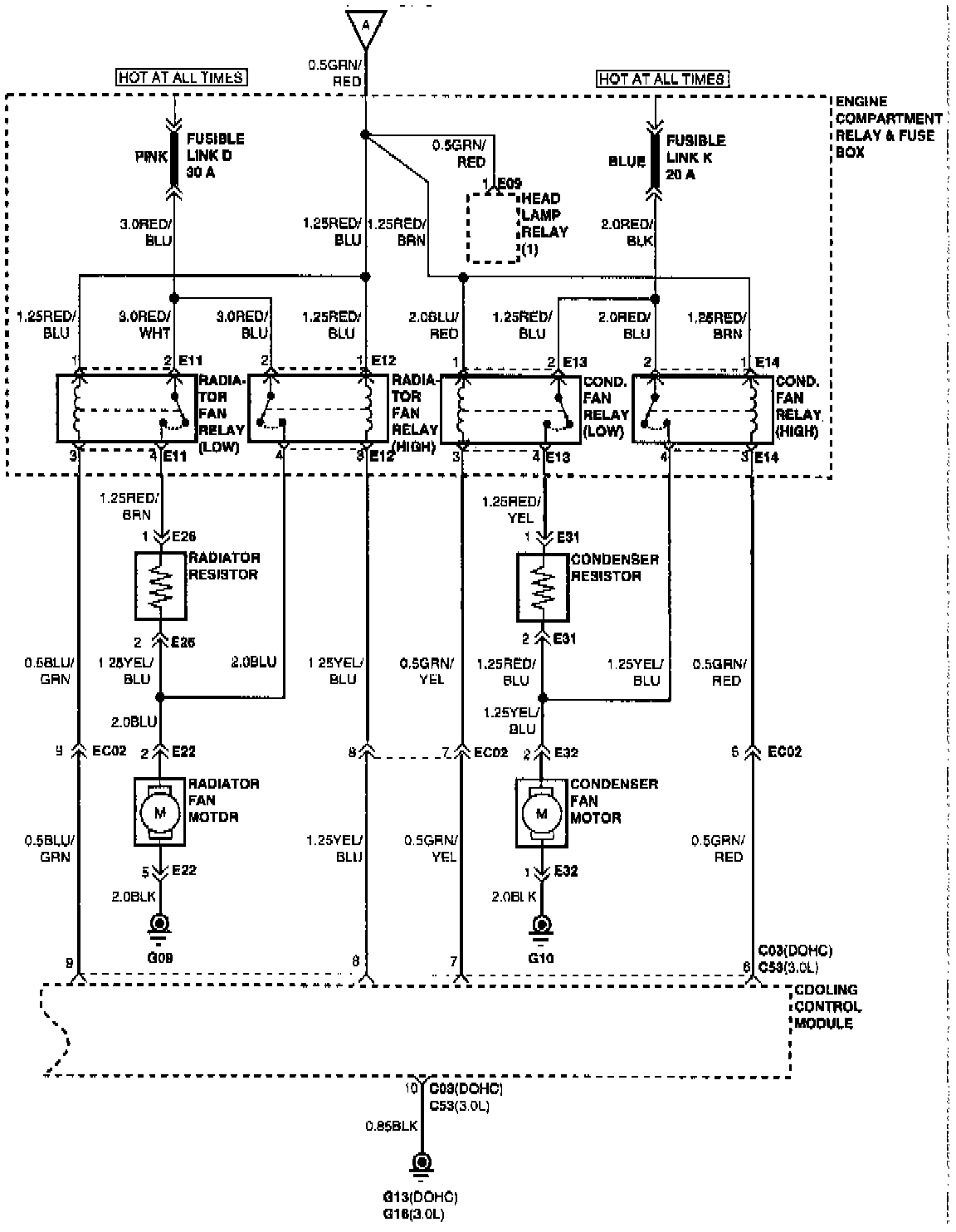 CONDENSER FAN RELAY DIAGNOSIS.