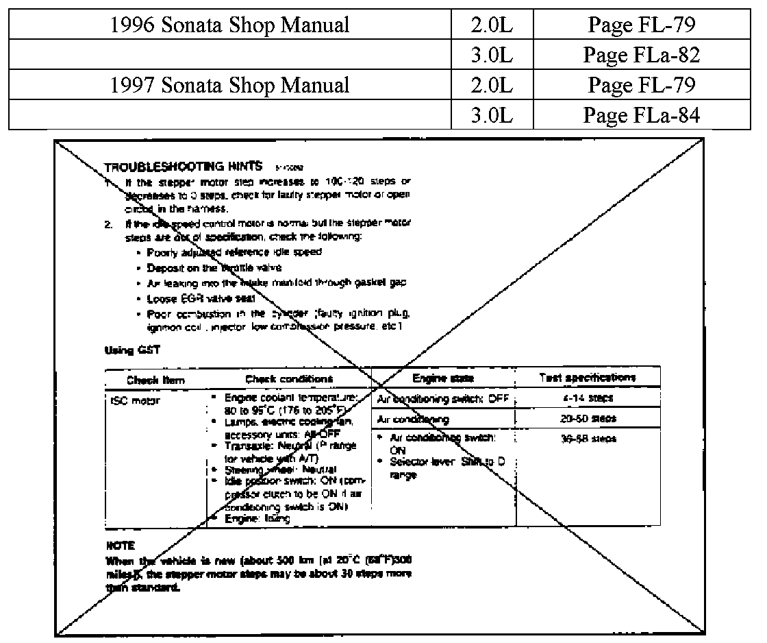 The 1996 & 97 Sonata Shop Manuals incorrectly state that the ISC actuator information can be read by the Scan Tool. Please disregard the published pages shown.