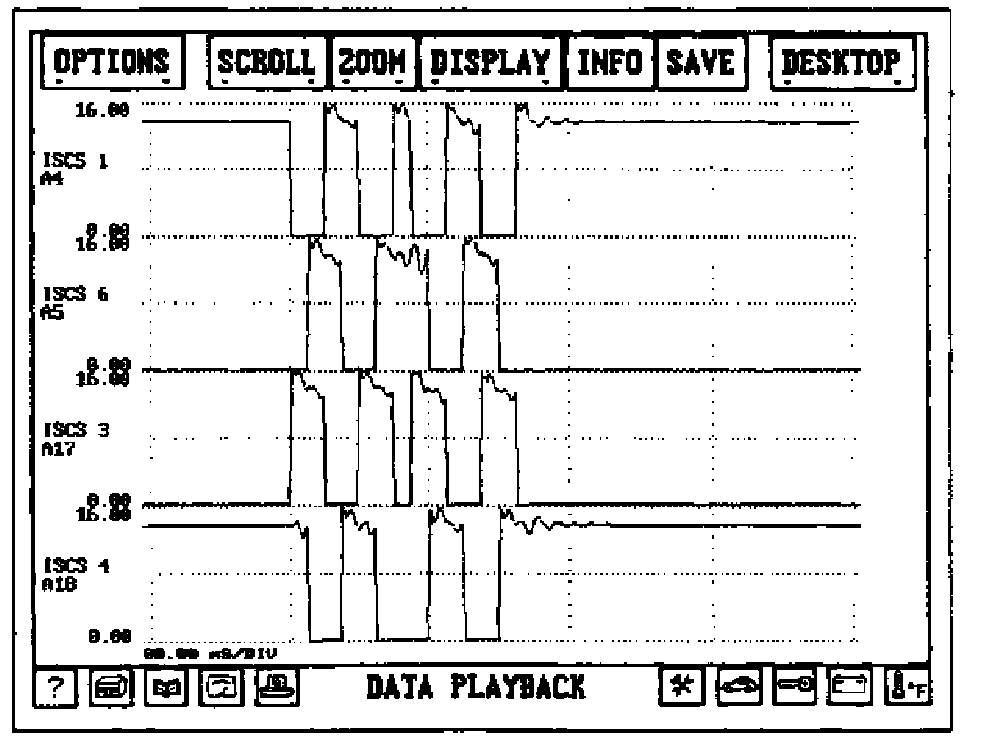 ^ Using HDS Signal Wave Forms, select the Idle Speed Control Signal (ISCS) A4, A5, A17, and A18 and monitor the signals.
