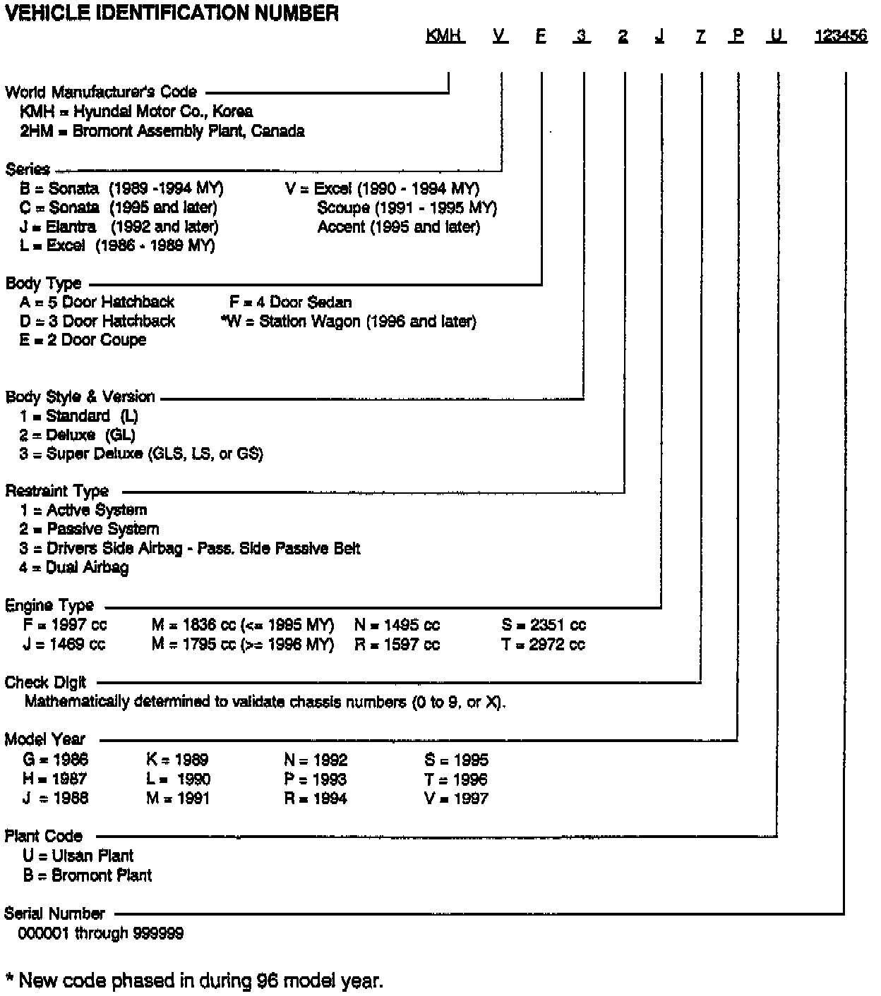 This bulletin provides information concerning the vehicle identification number of all Hyundai vehicles.