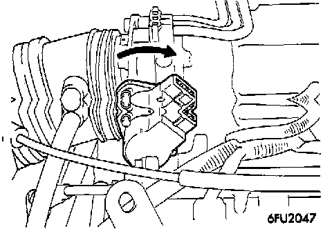 4. Loosen the throttle position sensor mounting bolts and turn the throttle position sensor body fully counterclockwise.