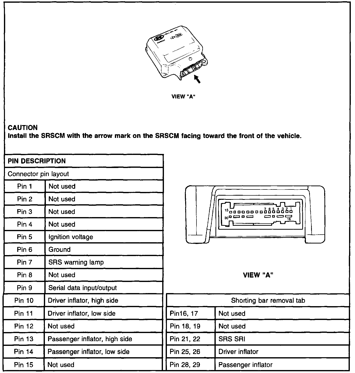 SRSCM (SRS Control Module) Connectors: