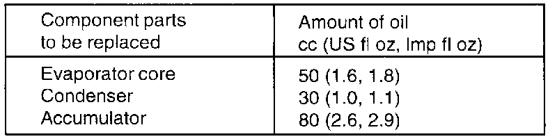 When replacing the system's component parts, be sure to add the following amount of oil to the parts being replaced.