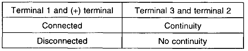 1. Connect the negative (-) terminal of a 3 V power supply to terminal 2 of the power transistor; then check whether there is continuity between terminal 3 and terminal 2 when terminal 1 and the positive (+) terminal are connected and disconnected.