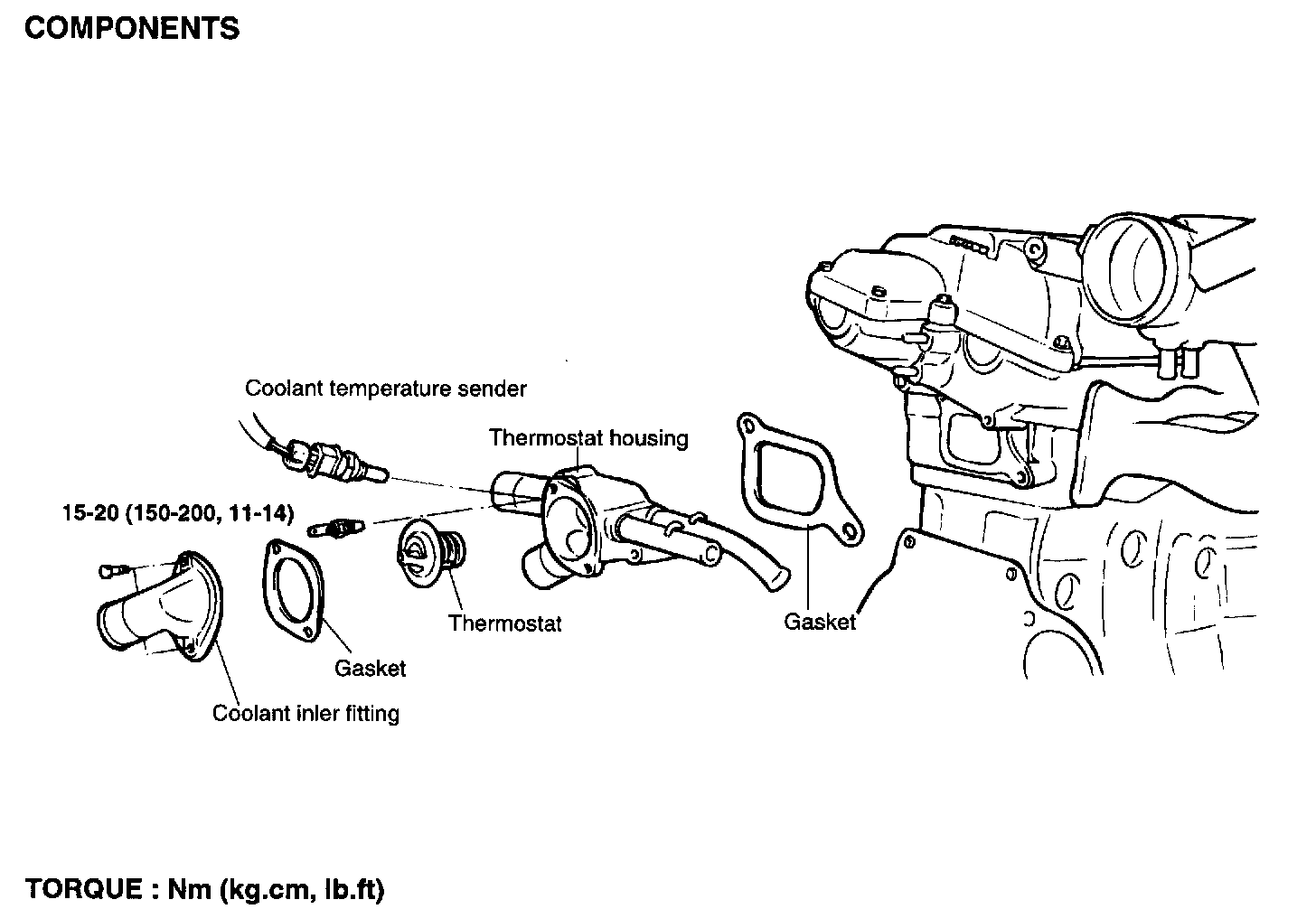 Coolant temperature sensor: 15 - 20 Nm (150 - 20 kg.cm, 11 - 14 ft. lbs.)