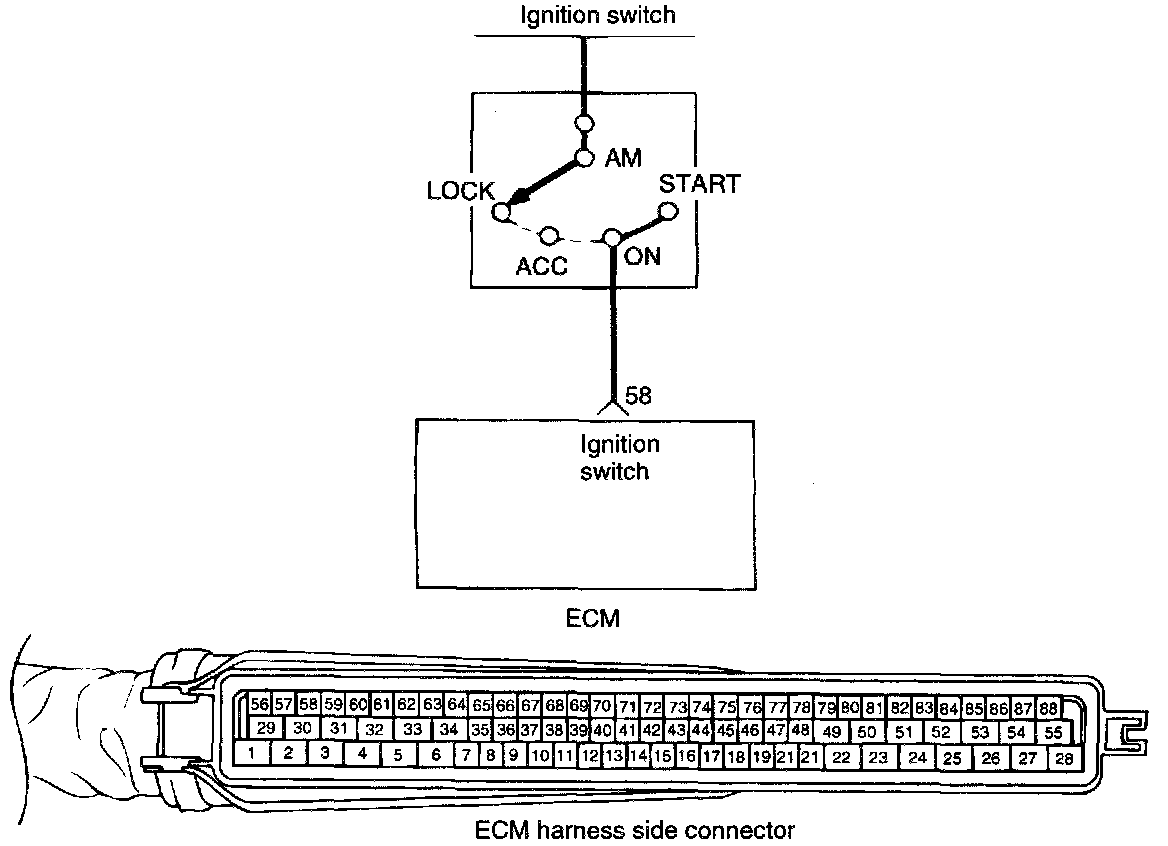 IGNITION SWITCH-ST M/TThe ignition switch-ST inputs a high signal to the ECM while the engine is cranking. The ECM provides fuel injection control, etc. at engine start-up based on this signal.