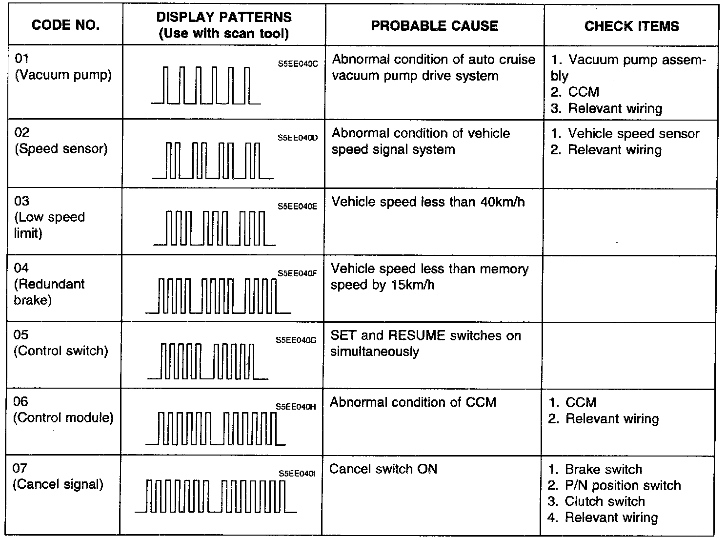 Self-diagnosis checking is performed when there has been an automatic cancellation, without cancel switch operation.1. The following two methods can be used for checking the diagnosis.