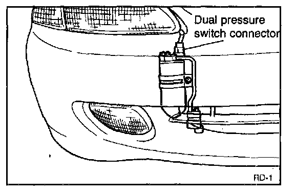 1. Check the dual pressure switch and the fittings for leakage, using a leak detector.