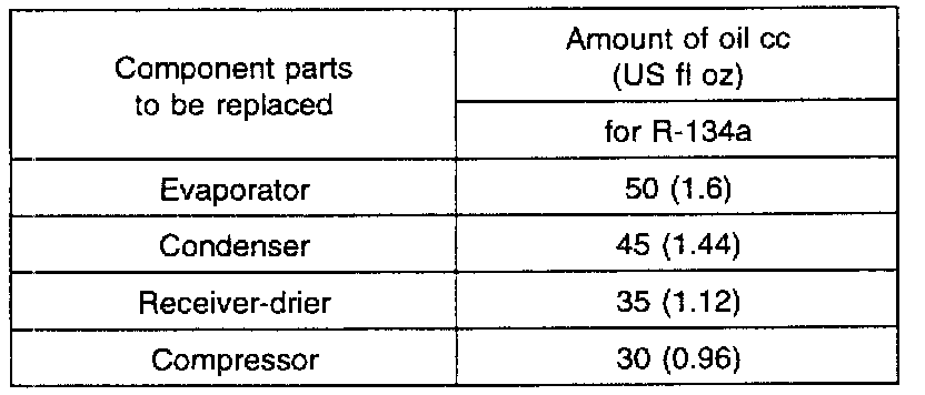 When replacing the system's component parts, be sure to add the following amount of oil to the parts being replaced.