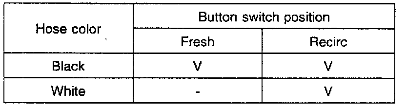 Connect the vacuum tester to back color hose for the fresh/recirc control switch.