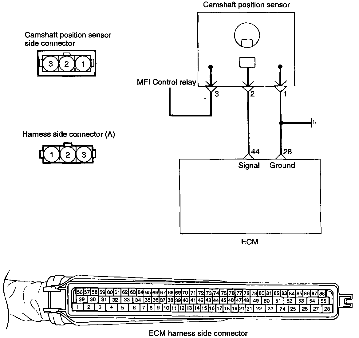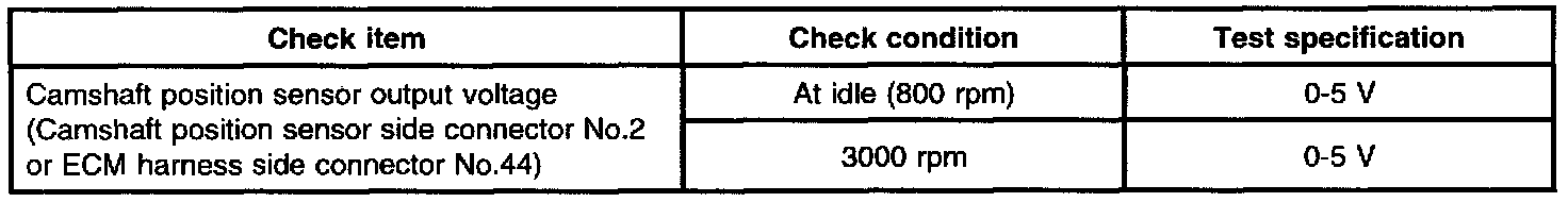 HINT: If the camshaft position sensor does not operate correctly, correct sequential injection does not occur so the engine may stall or run irregularly at idle or fail to accelerate normally.