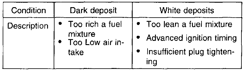 3. Check spark plugs for the following:
