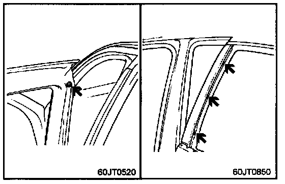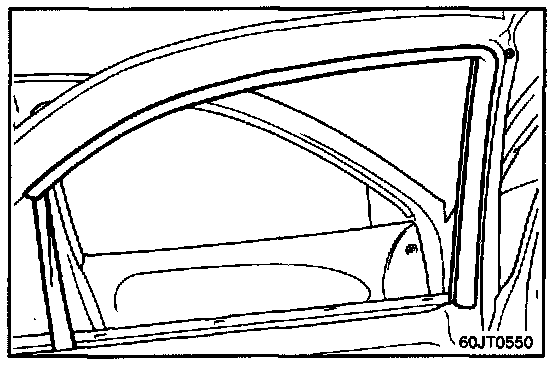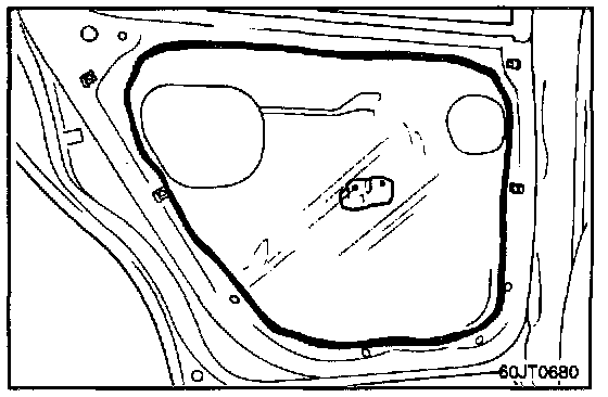 NOTE: When installing the door trim seal, butyl tape should not be placed over door trim fastener mounting area.