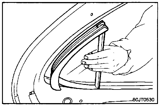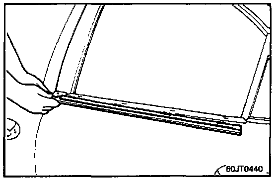 7. Remove the rear door belt outside weatherstrip.