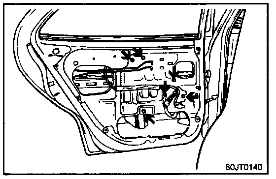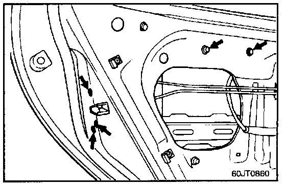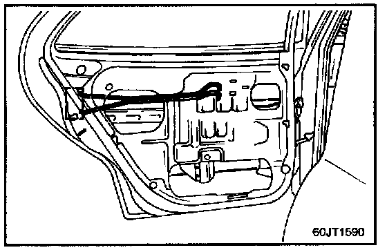 Disconnect the outside handle rod from the outside door handle at the position shown.