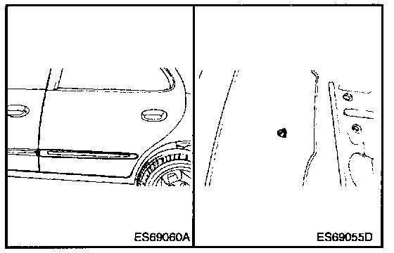 12. Remove the rear door belt molding joint and rear door frame molding.