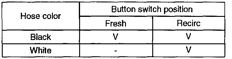 Connect the vacuum tester to black color hose for the fresh/recirc control switch.